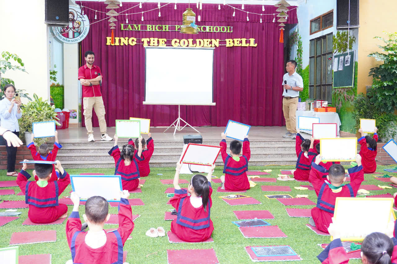Ngày 23/4/2025 IMA Việt Nam phối hợp cùng Trường Mầm non Lâm Bích, Nghệ An tổ chức cuộc thi “Rung chuông vàng Tiếng Anh” – Ring The Golden. Đây là sân chơi trí tuệ siêu hấp dẫn, một hành trình khám phá đầy thú vị dành cho các “nhà thám hiểm ngôn ngữ nhí” của chúng ta!